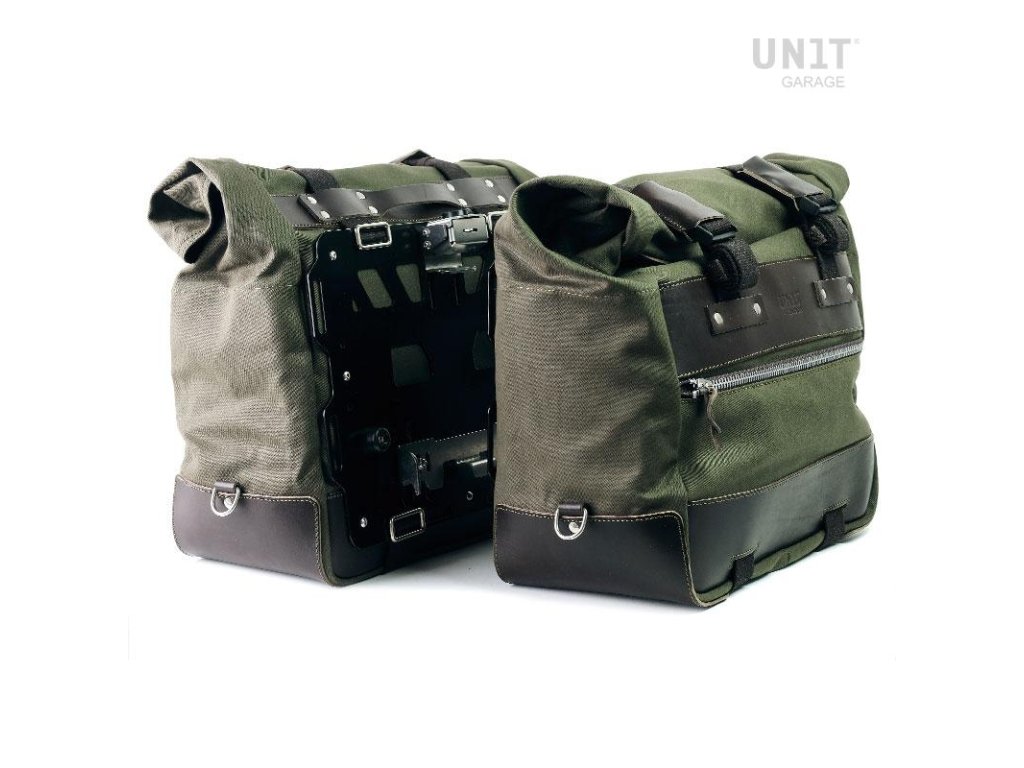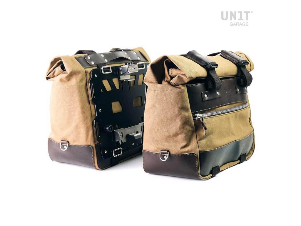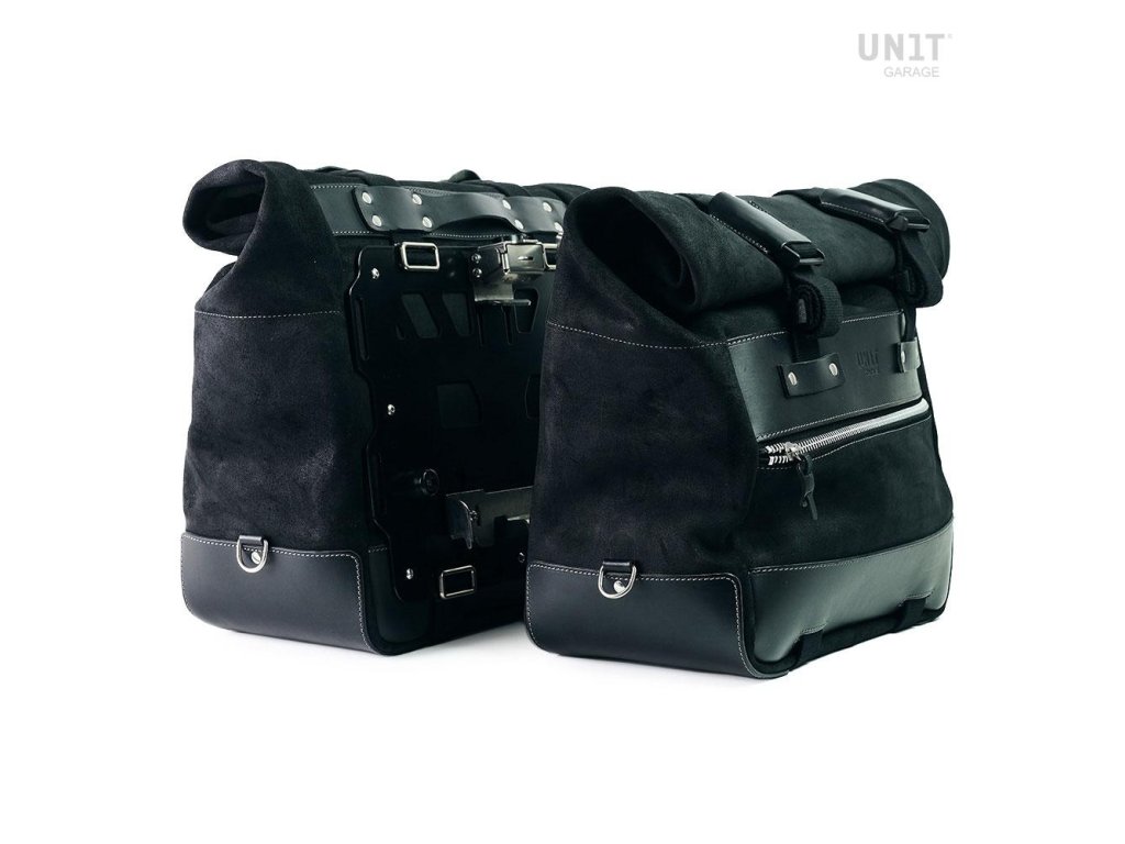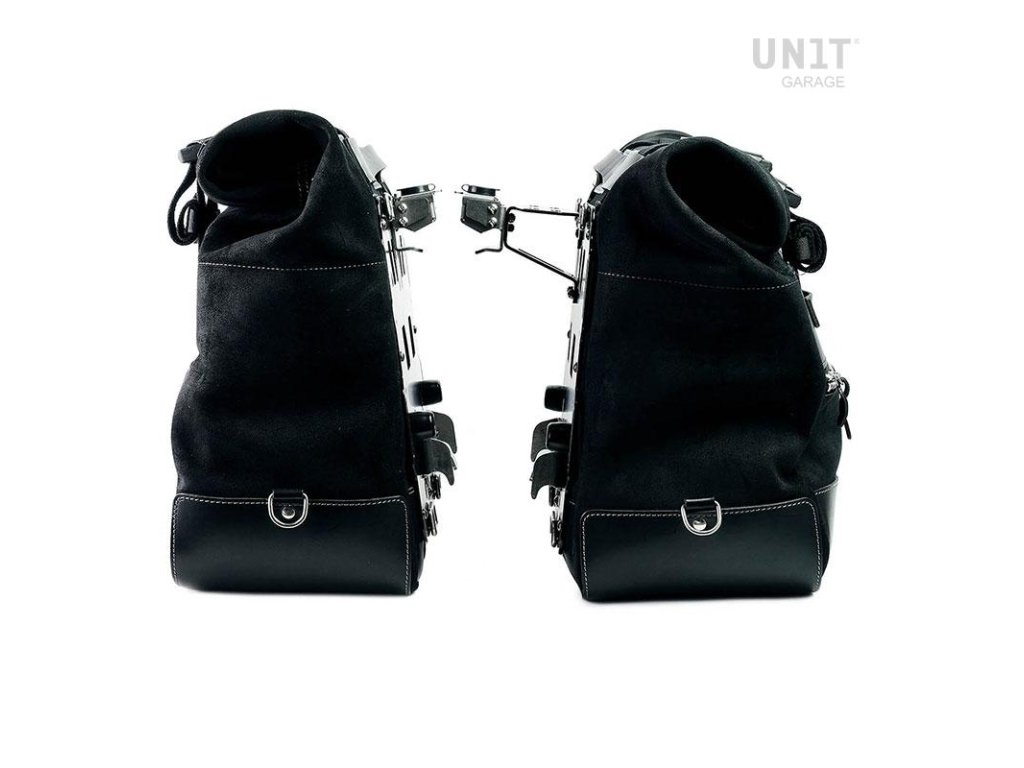 Velké textilní nebo kožené brašny 40-50 litrů (x2) s hliníkovou zadní stěnou pro rychlé a uzamykatelné nasazení na nosiče pro BMW R12 G/S. 6 verzí.
