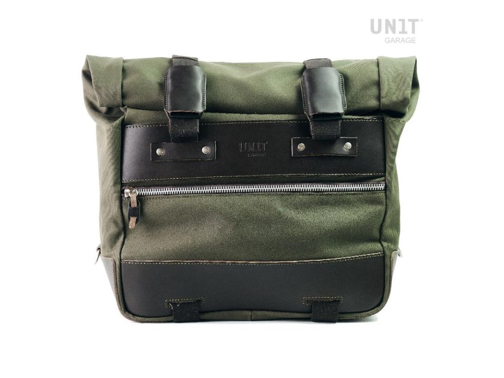 Kapsy se zavírají masivními kovovými zipy, které se nezasekávají a jen tak je nezničíte (oproti plastovým zipům). Brašna se zavírá rolováním shora, proto má variabilní objem 40 až 50 litrů - záleží, jak moc ji zarolujete. Srolovaná brašna se zavírá plastovými rychlo-sponkami, které se schovávají v kožených pouzdrech a po uzavření nejsou viditelné.