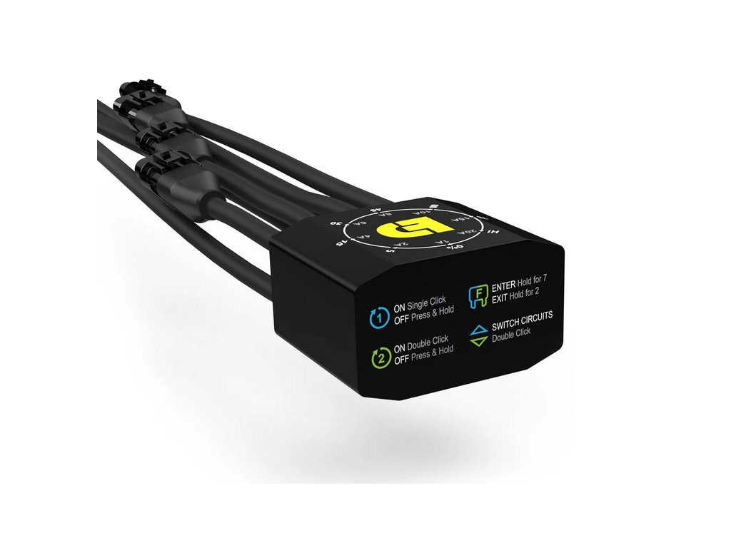 Oba okruhy světel jsou elektronicky jištěné a pojistky mohou být nastaveny přímo na vypínači! Halo se rozsvítí červeně, aby vás informovalo, když je pojistka okruhu spálená. -