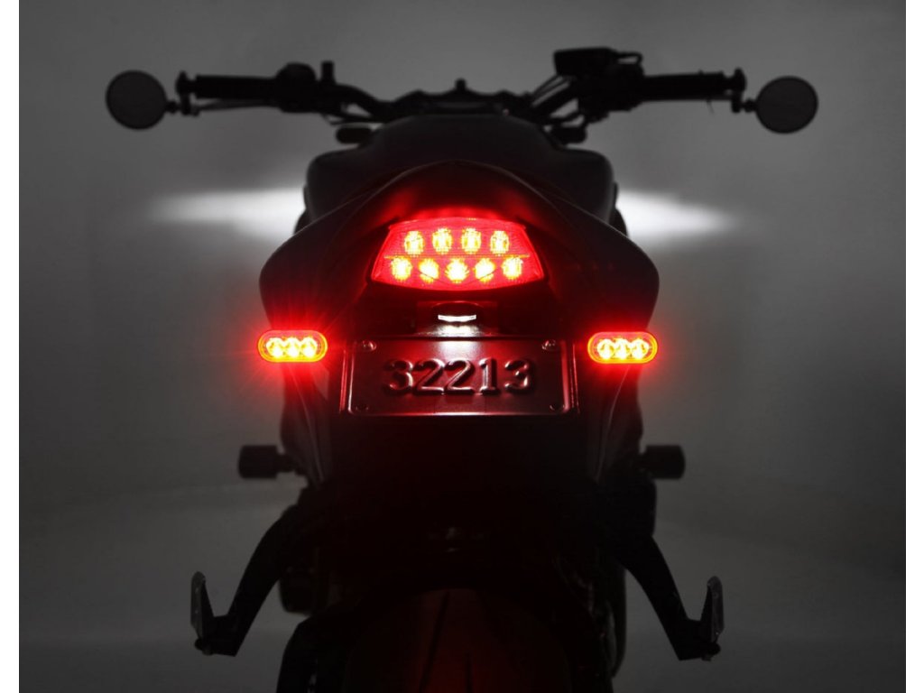 Tato verze se závitovým čepem M8 je navržena jako náhrada originálních směrovek. Oranžové směrové světlo T3 je výrazně jasnější než originál, přitom je kompaktnější. Integrovaný červený brzdový okruh navíc zajišťuje maximální viditelnost bez nutnosti instalace dalších přídavných brzdových světel.