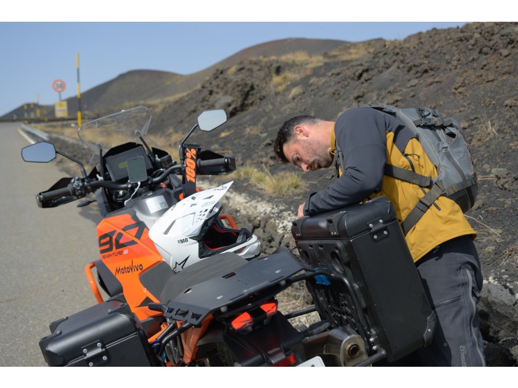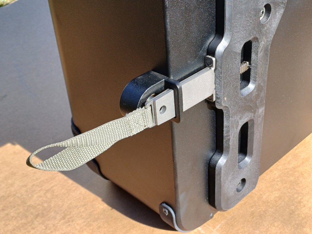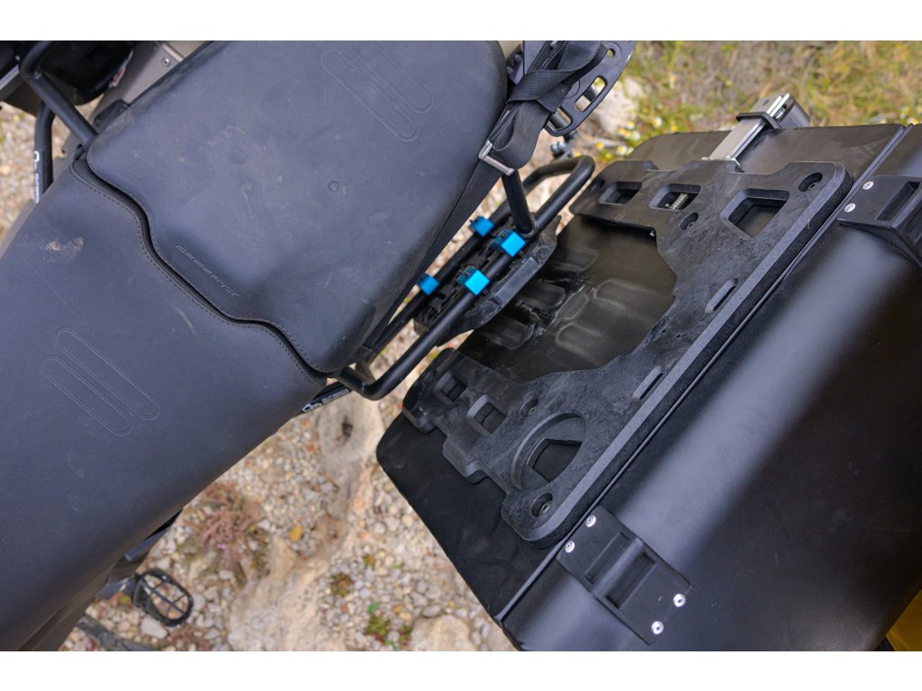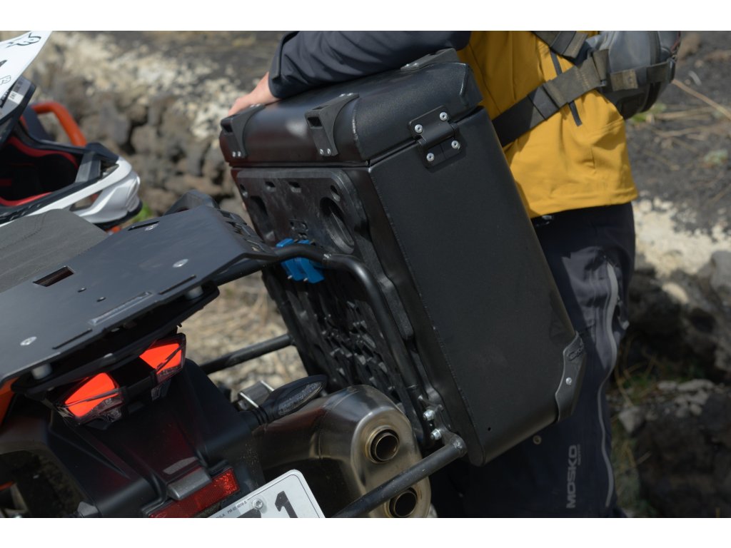- Při navrhování hliníkových kufrů byla naší prioritou číslo jedna kompatibilita se systémem brašen Mosko Moto Backcountry. Proto jsme se rozhodli pro úzkou a vysokou konstrukci namísto krátké a široké verze. V závislosti na systému nosiče brašen, který právě používáte, může být horní část hliníkových brašen mírně nad sedadlem spolujezdce.
