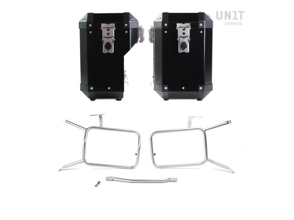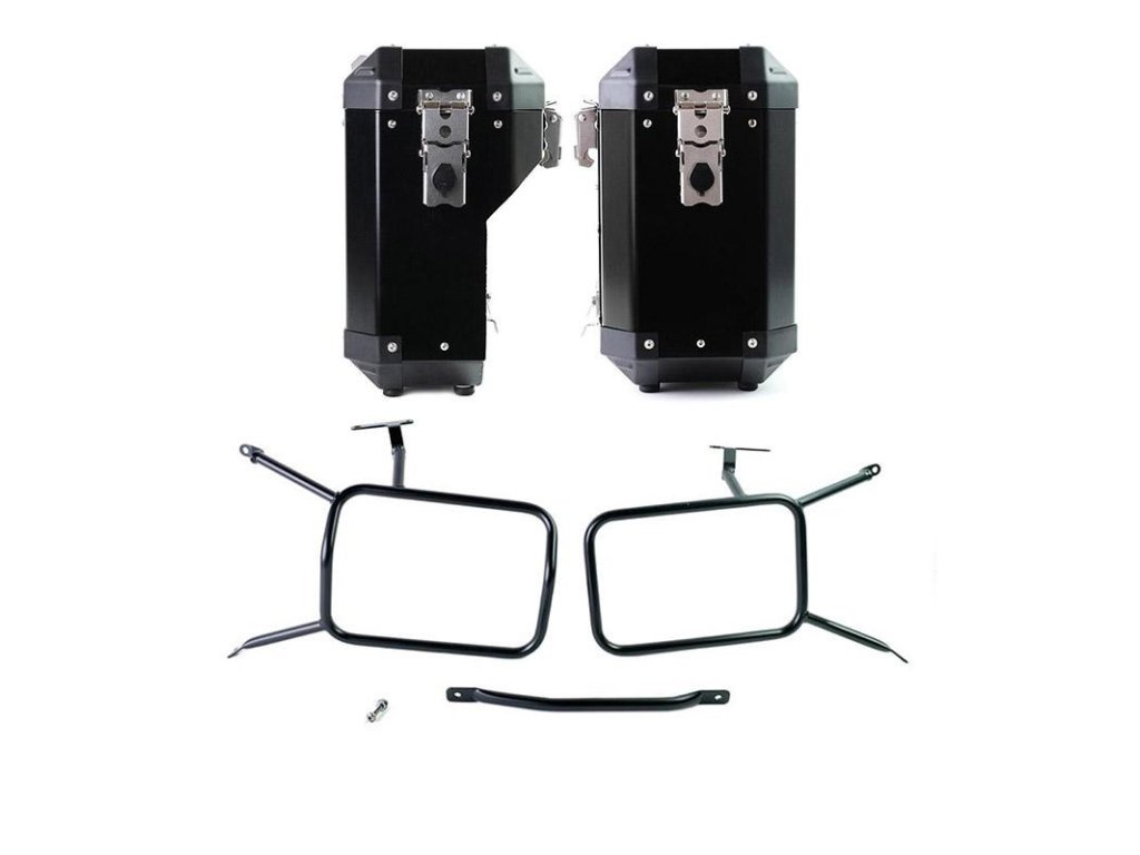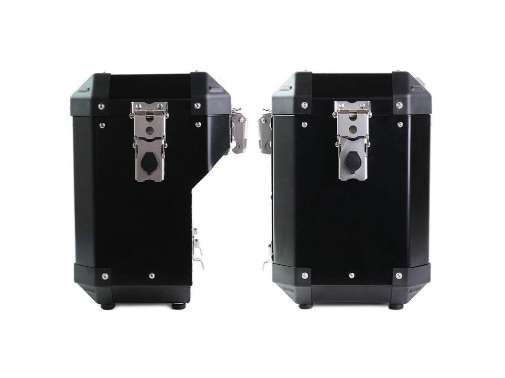Pár hliníkových bočních kufrů. Verze 40L + 34L (strana s výfukem) nebo 47L + 41L (strana s výfukem)