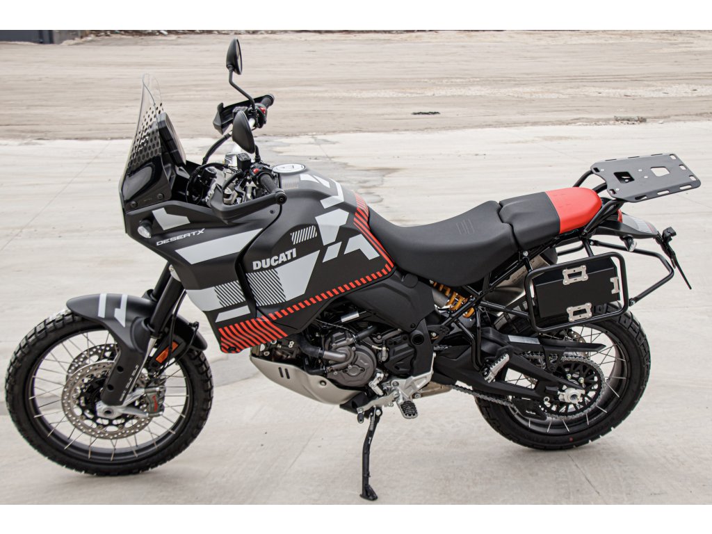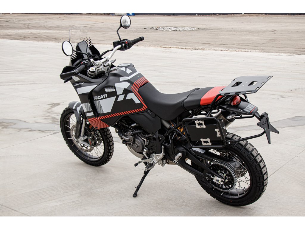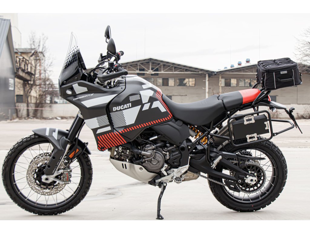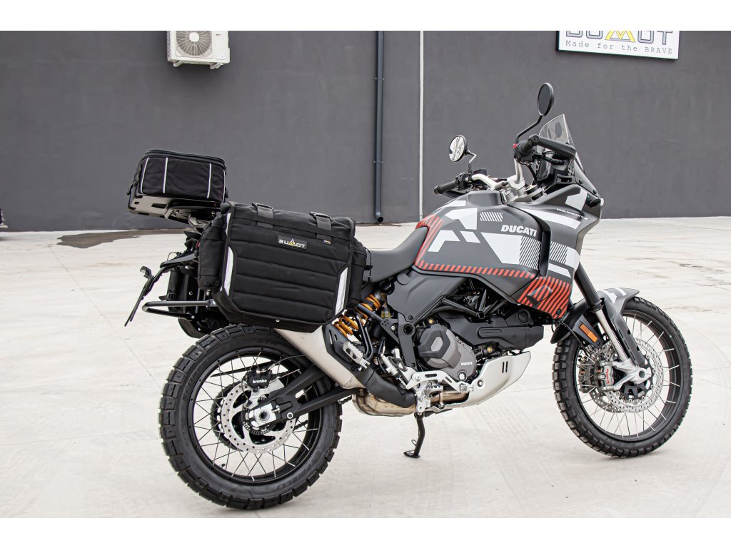 Široká hliníková plotna BUMOT pro uchycení zavazadel na Ducati Desert X. Díky otvorům po obvodu lze na plotnu uchytit libovolná měkká zavazadla. Zaoblené rohy plotny zabrání poškození popruhů.
