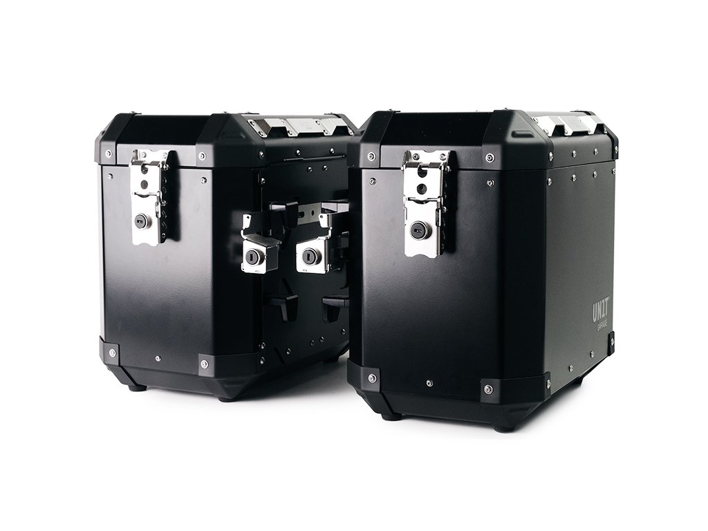Hliníkové boční kufry UNIT Garage s rychloupínákem na originální nosiče BMW R1300 GS Adventure, s možností přizpůsobení zámků na originál BMW.