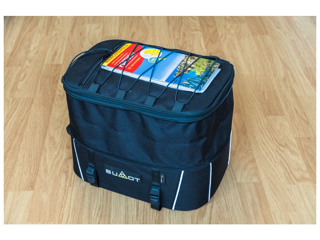 Pevná Cordurová brašna, o mnoho lehčí, než plechový top case. Vyrobená z 1100 Denier DuPont Cordury, aby přežila nejdrsnější zacházení. Zvětšitelný prostor rozepnutím zipu jako na tankvaku. Včetně vnitřní vodotěsné brašny! Reflexní pruhy pro vaše bezpečí v provozu.