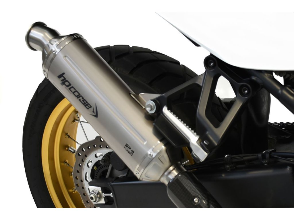 SP-2 SHORT má výstupní svod kruhového průřezu bez svárů v ohybu pro dokonalý průtok výfukových plynů. Logo HP CORSE Titanium je vygravírováno laserem.